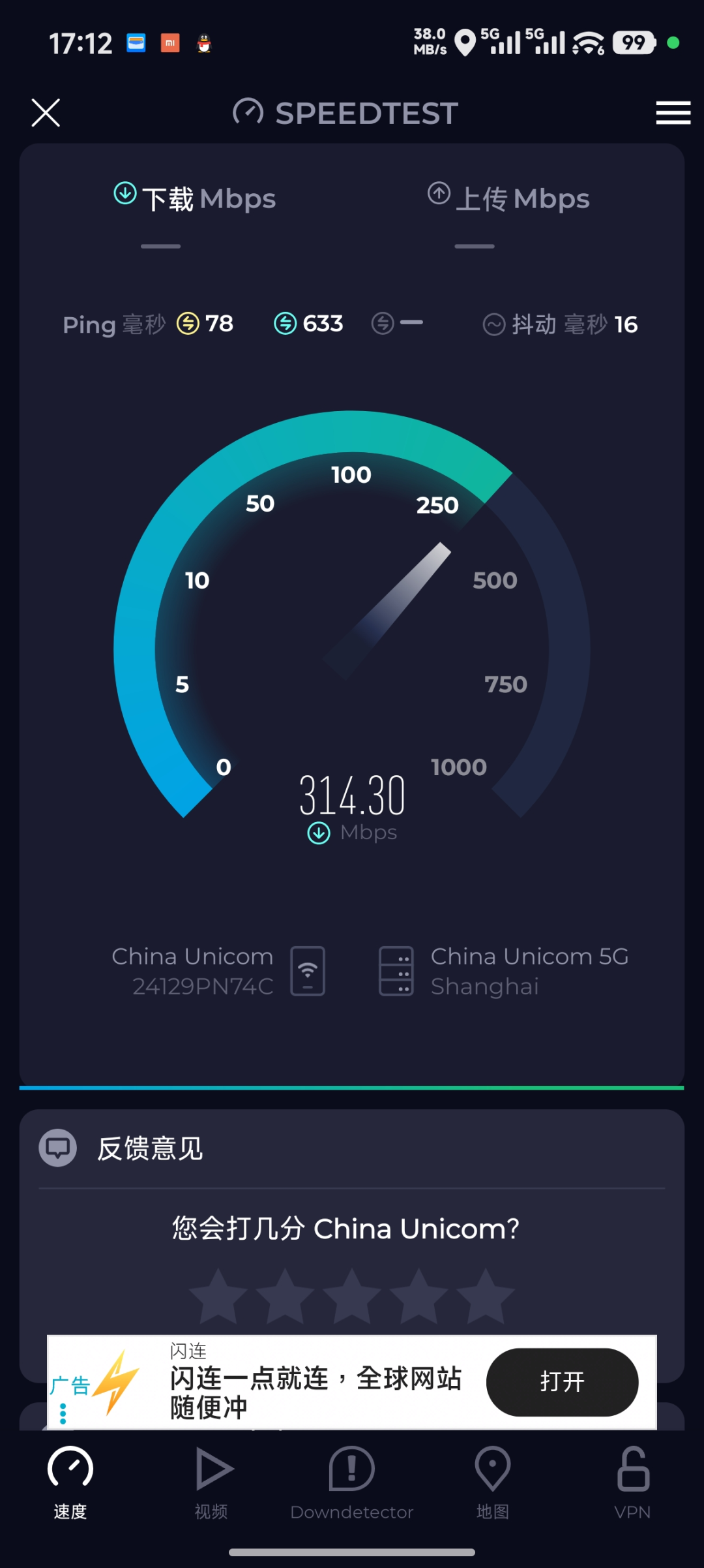 我用的这款是紫光展锐的芯片,日常使用下行带宽基本稳定在150M-300M带宽左右,上行是50-100M带宽,日常视频聊天、刷视频、办公使用,大概是6台设备一起使用没有一点压力。所以网速这块儿,大家可以参考家里的300M宽带的效果。