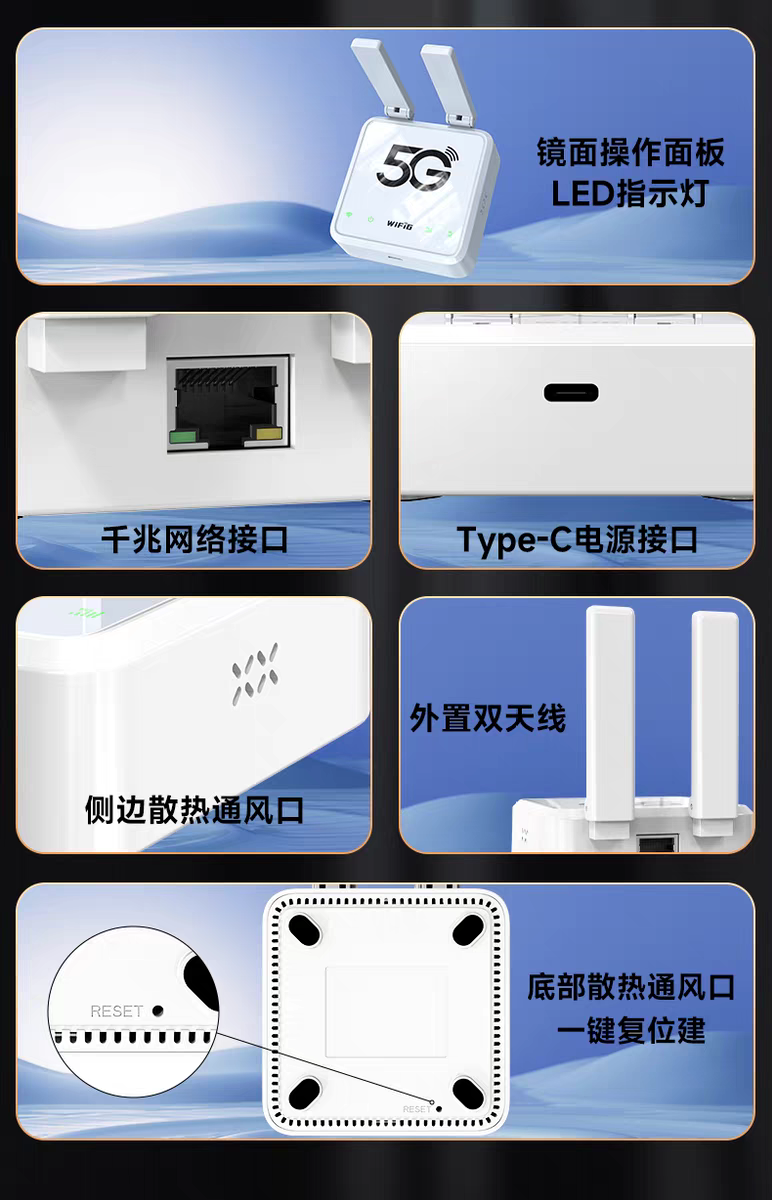 5G CPE双天线版:这个是Type-c口的,比普通CPE设备小点,可以插充电宝使用,适合宿舍等会断电的场景可以使用充电宝供电,兼顾了普通CPE和随身WIFI的优点。