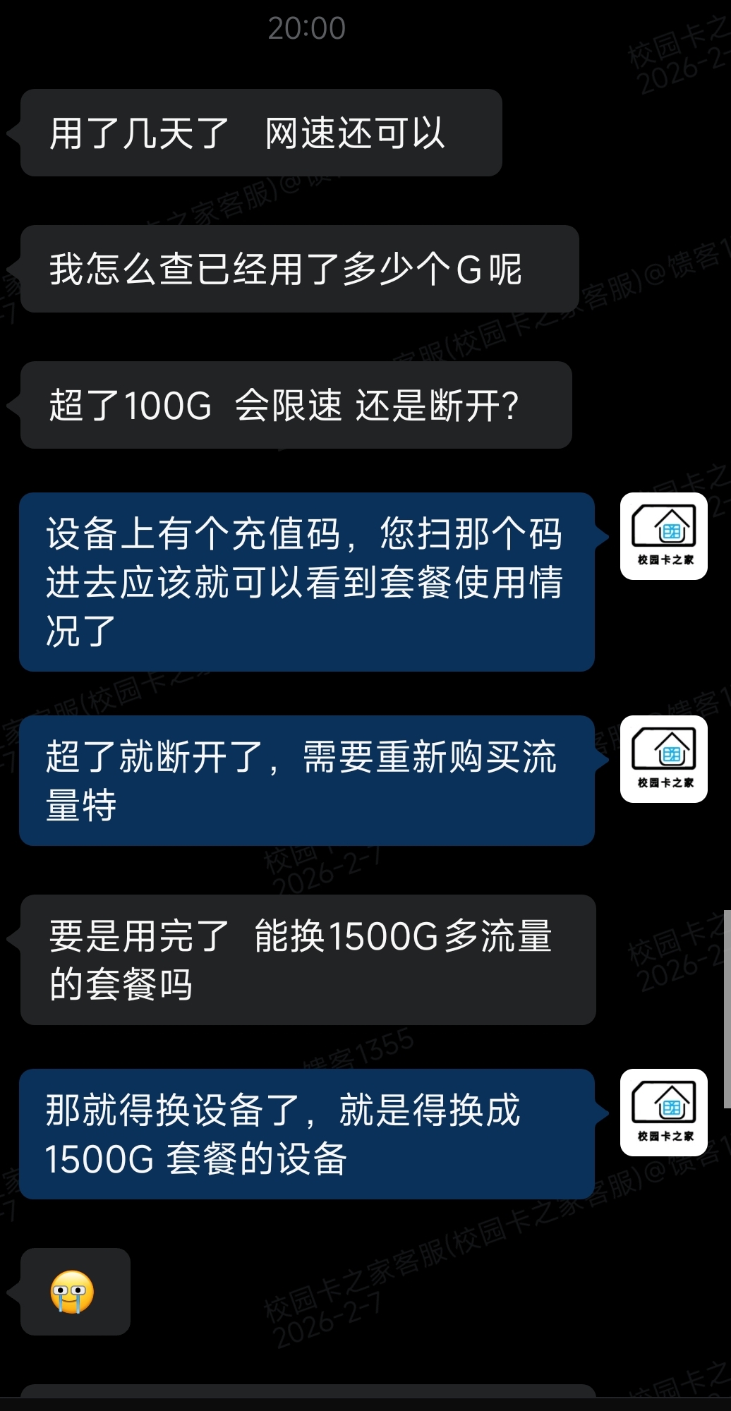大家根据自己实际情况来选择,也可以考虑先选择小流量包版本的体验一下,后续要长期用再联系我更换成1500G的设备。