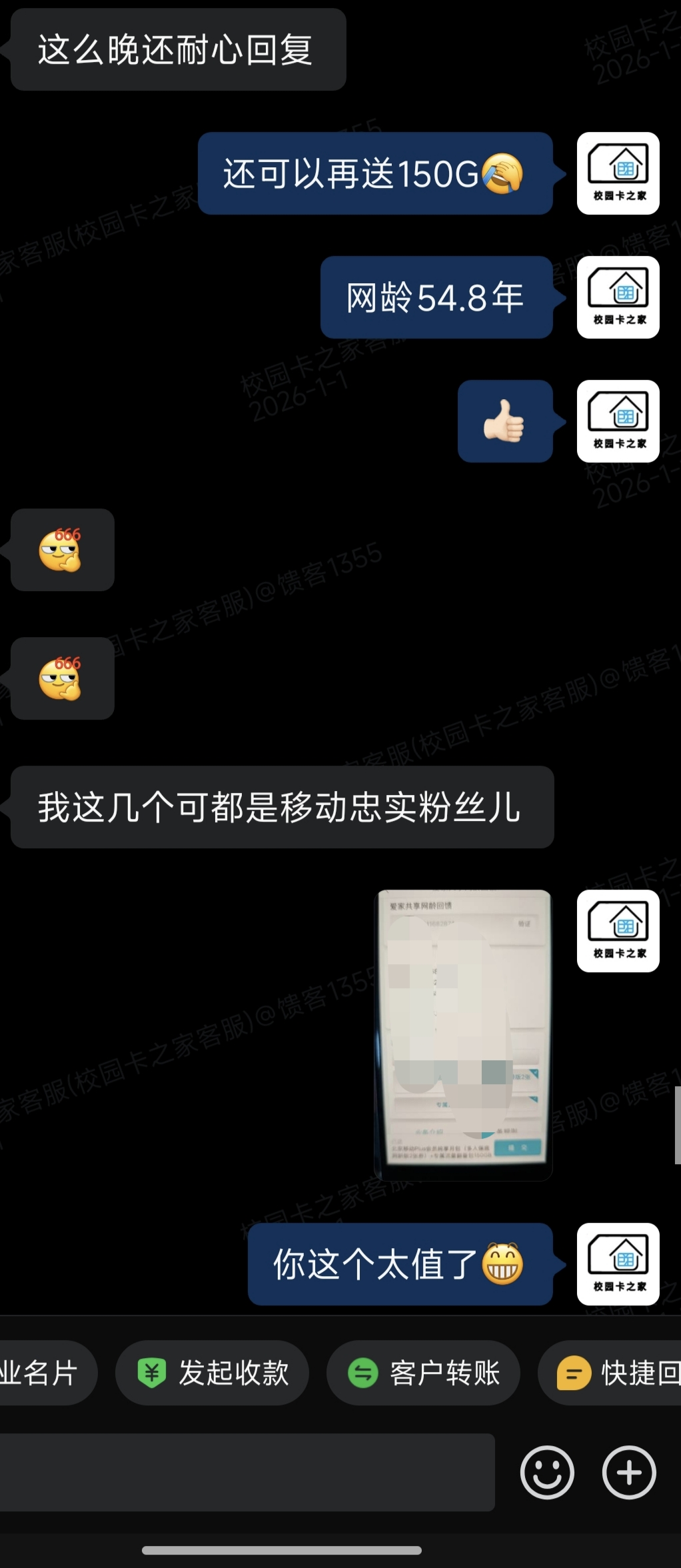 刚刚给客户办理完,这个客户客户三个号码月消费共264元,办理269低消档位,相当于每个月再多花5块钱,269档位送150G流量+2500分钟通话+2000M宽带,然后三个号码网龄54.8年再送了150G加2张PLUS优惠券!!!